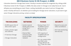 Chicago, often called the “Windy City,” is a key communications hub in the Midwest. Its strategic, central location offers ideal spaces away from urban congestion and environmental risks, ensuring the safety of your company’s data. With a booming Midwest market, Colocation America’s data centers and IT infrastructure provide top-tier connectivity, security, and cutting-edge facilities, ensuring your business thrives. Colocation America’s third Chicago facility, located outside the immediate city at 800 E Business Center Dr, Mt. Prospect, IL 60056, provides all essential services including power, cooling, and bandwidth. Contact us today for Chicago server colocation or pricing inquiries.